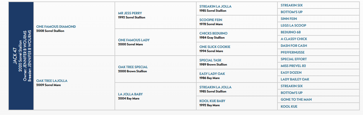 Sire: One Famous Diamond— Dam: Oak Tree Lajolla– Sorrel