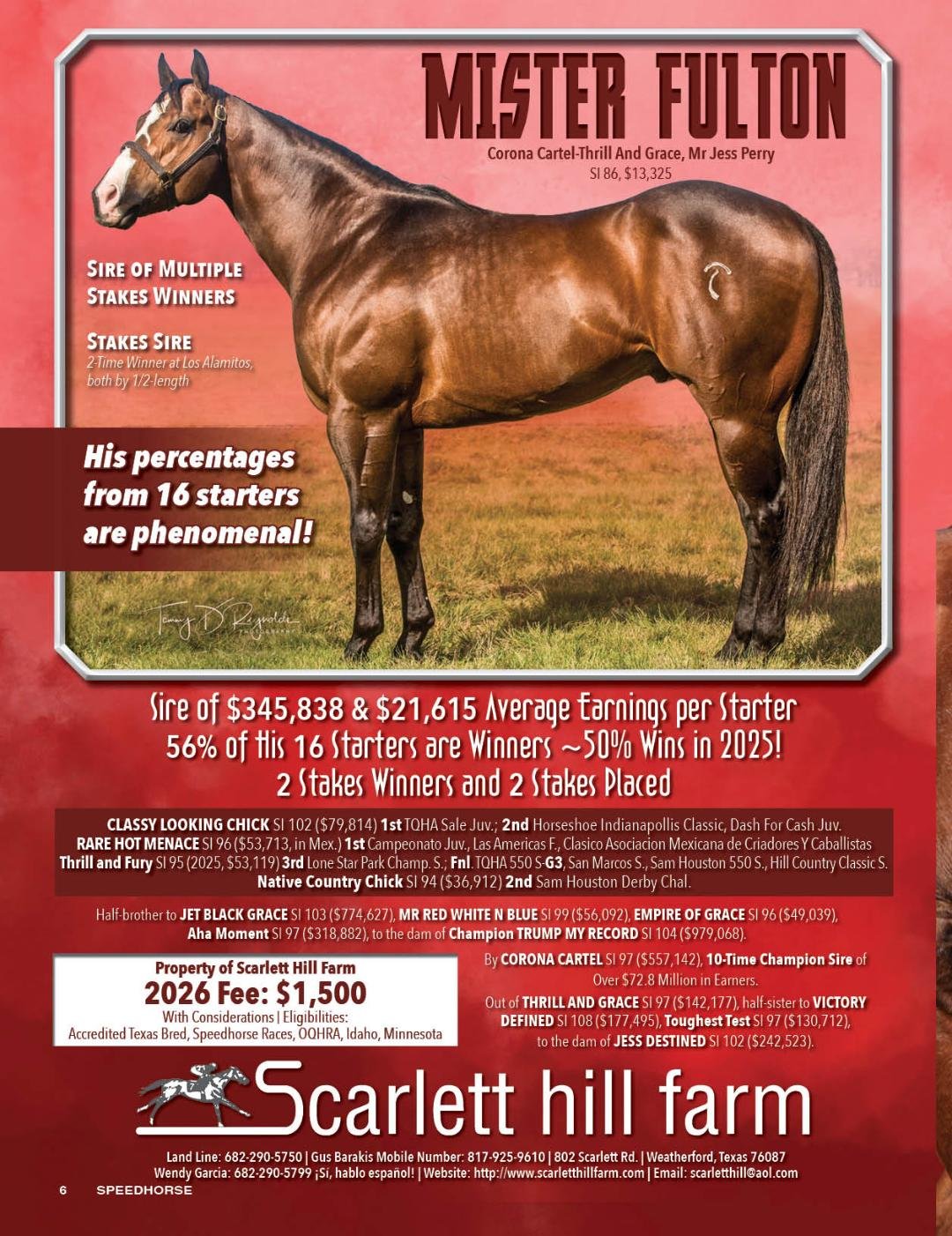 • By Corona Cartel SI 97 (sire of 200+ stakes winners & $70M+ in progeny earnings).