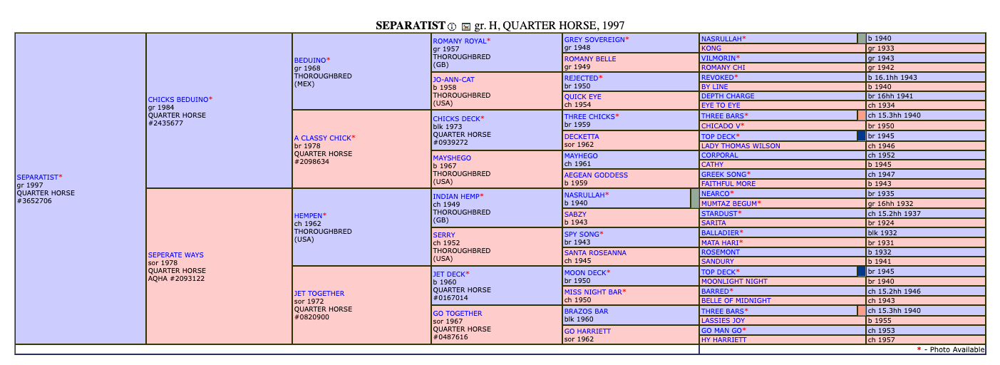 Sire: Chicks Beduino– Dam: Separate Ways – Grey